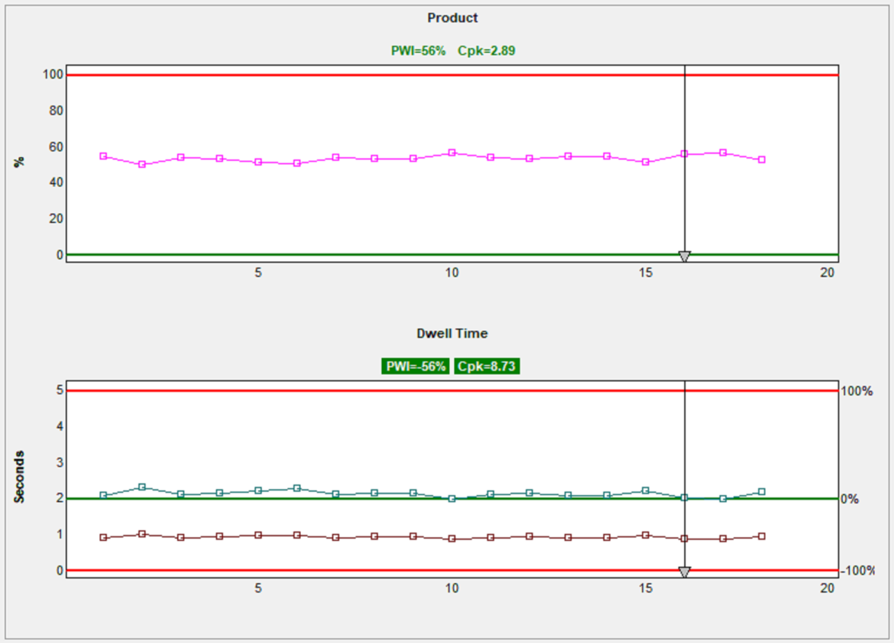 - SPC图标实时统计每片PCB板的工艺结果。并自动计算Cpk。当生产工艺出现偏移是自动触发警告和警报。